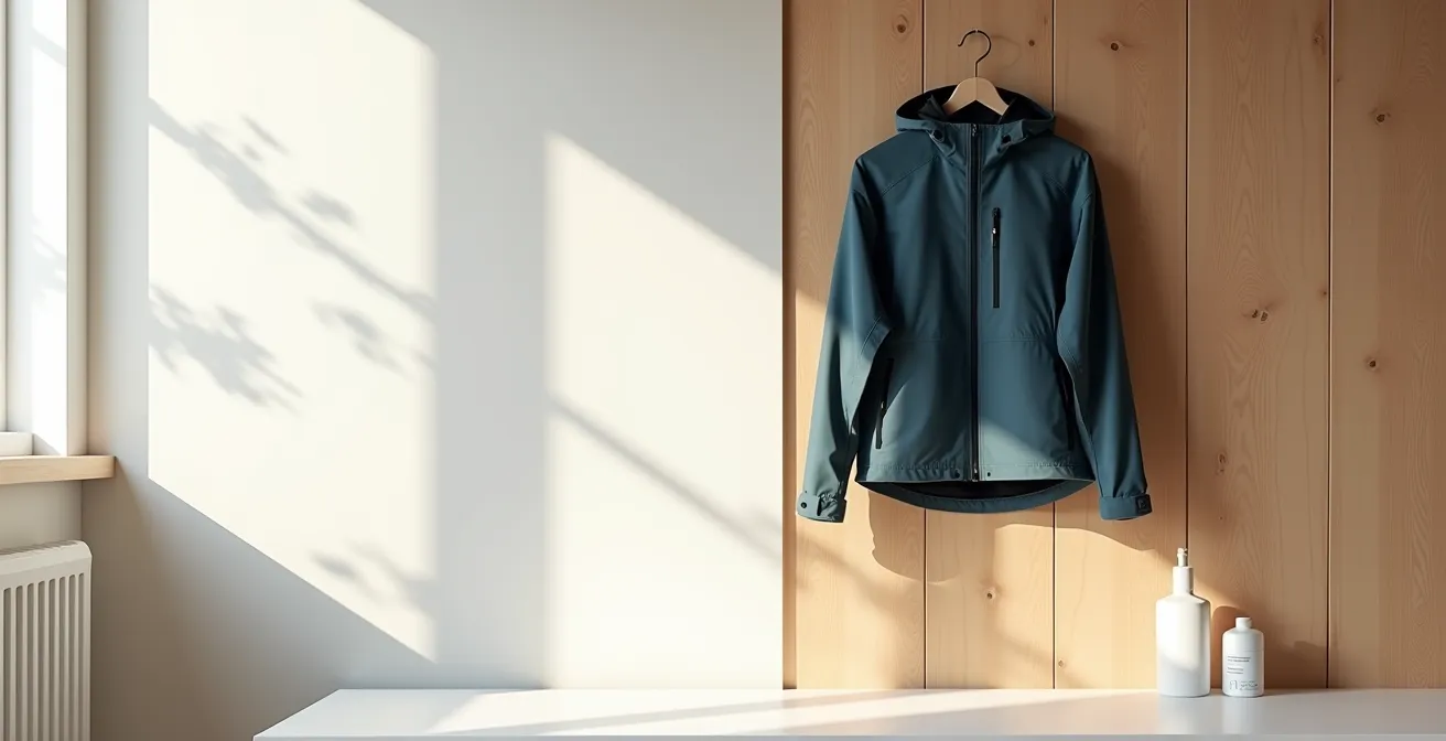 Si le mal est fait, tout n’est pas perdu, mais une procédure de sauvetage est nécessaire pour tenter de décaper ce film gras. Il faudra laver le vêtement plusieurs fois avec une lessive technique pour déloger les résidus d’assouplissant avant de pouvoir réimperméabiliser et réactiver la déperlance. C’est un processus long qui souligne l’importance d’une règle simple : jamais d’assouplissant, ni de produit « 2-en-1 » qui en contiendrait.