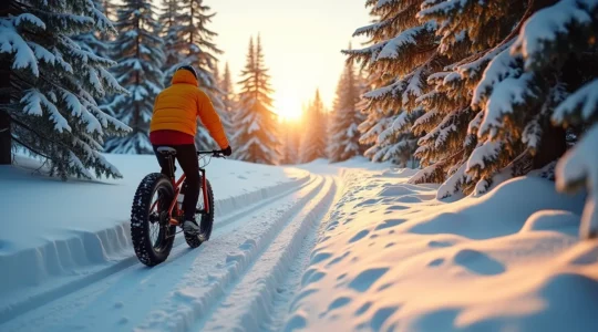 Le fatbike transforme l’hiver québécois en saison cyclable. Ses pneus surdimensionnés, gonflés à basse pression (souvent entre 5 et 10 PSI), permettent de rouler sur neige damée, glace ou même sentiers forestiers. Mais cette discipline exige une gestion fine de la transpiration : pédaler génère une chaleur intense, mais s’arrêter cinq minutes au sommet d’une côte peut suffire à provoquer un refroidissement brutal. La règle des trois couches — couche de base évacuant l’humidité, couche intermédiaire isolante, couche extérieure coupe-vent — devient ici un principe de survie.